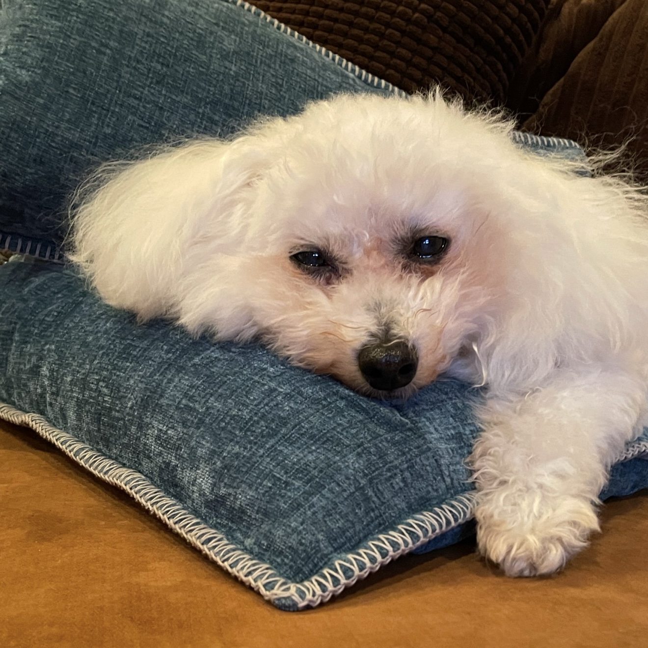 Each time I visited the home, Snowy would wag his tail, jump around & made sounds as if he was telling me something. He greeted me with so much excitement every time that I feared he would pass out. He acted as if I was the only one in the room & would follow me to wherever I sat on the couch. Where I sat, that’s where he would stay beside me. I would lightly rub his head and before long he would fall asleep.